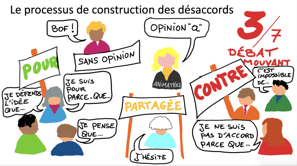 L’objectif de cette phase essentielle du débat est de permettre la construction d’une image plus sophistiquée des positions, une cartographie, et ainsi, éclairer le désaccord qui divise et organise tout à la fois les positions.