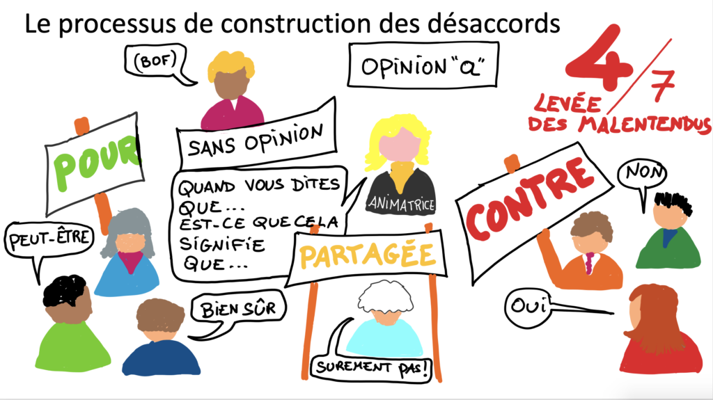 Lever les malentendus est une démarche d’élucidation qui construit des références communes sur la signification des termes employés. Au minimum, une partie des désaccords peut se trouver levée par cette étape essentielle de la construction des désaccords.