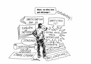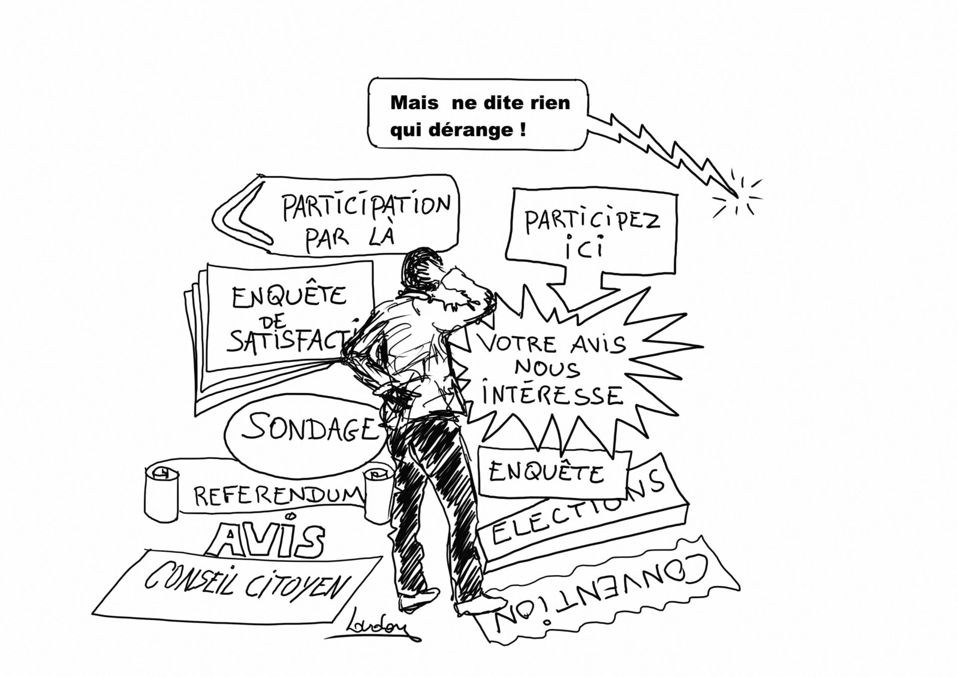La participation, c’est comme le gaz dans les immeubles parisiens du 19ème siècle, il, y en a à tous les étages de notre vie sociale… Pourtant, ces appels à la participation masquent des pratiques fort différentes. Remplir un questionnaire de satisfaction serait participer à l’amélioration continue de la qualité… Donner un avis sur un projet déjà bouclé serait participer à la vie démocratique de l’institution qui consulte…